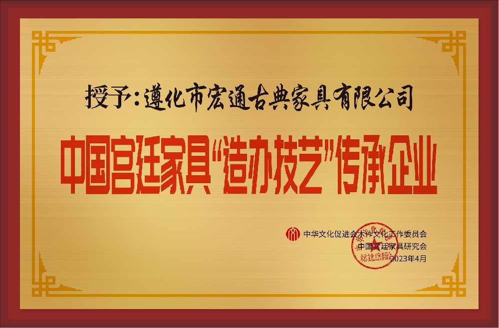 中國京作家具名字號、中國宮廷家具造辦技藝傳承品牌企業